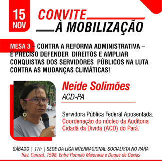 MESA 3 | 15 de Novembro (Sexta-feira) | 17 horas | Sede da Liga Internacional Socialista no Pará |